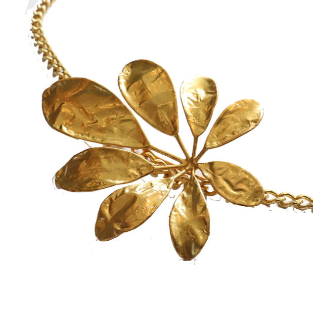 Each leaf is hand-selected and immortalized in precious metals, creating a piece that marries sustainability with beauty. Worn around the waist, it becomes more than an accessory - it becomes an embrace of nature, art, and meaning. A timeless accent, and a bold expression of organic luxury.